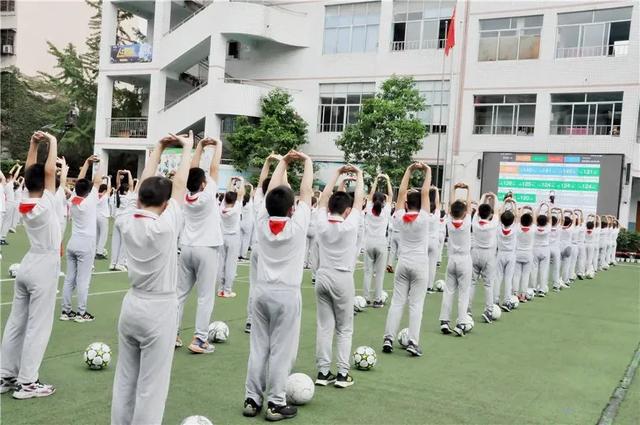 大课间展示环节,学校利用智慧校园系统自动控制大课间流程,淋漓尽致地展现了学校“小场地、大体育”的特色。
