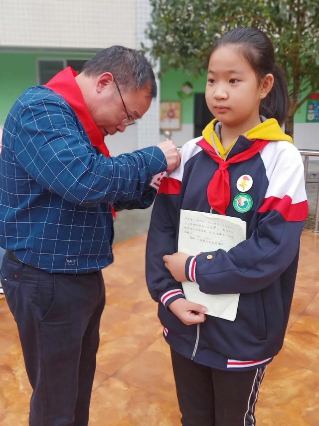 经辅导员老师代表和学生代表民主投票选出8名大队委正式委员,学校罗兴元副校长给每位大队委佩戴了标志。
