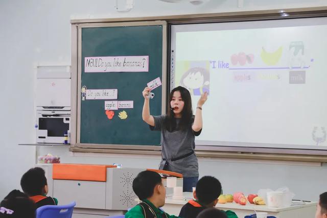 在江老师的课堂会有怎样的精彩表现呢,跟着镜头让我们一起进入幸福时刻吧!你看!江老师的课首先以一段热情洋溢的chant开始,并引入今天的教学主题Fruit DIY