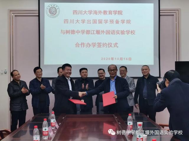 双方在坚持互利互惠,共同发展的原则下,四川大学海外教育学院、四川大学出国留学预备学院协助树德中学都江堰外国语实验学校就出国留学、访学、外语培训等开展各种形式的宣传活动以及研学(夏/冬令营)工作;为树德中学都江堰外国语实验学校学生提供符合相关条件国外院校录取、培训及境内外签证服务;并在树德中学都江堰外国语实验学校举办法语和日语小语种班级,预计明年正式开班。