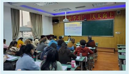 紧接着,刘小琴组长从阅读与阅读教学、小学语文阅读教学目标、小学语文“读、悟、练”教学策略与其他老师作经验交流。重点指出,要以读为本,有体验的读、传情达意的读、有兴趣的读,还结合了自身的教学经验,让大家受益匪浅。