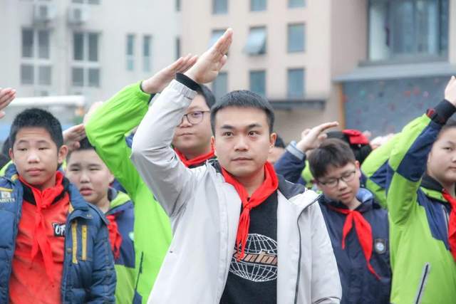 在先锋少年荣誉交接仪式中,第12批先锋少年光荣地履行了自己的职责,第13批先锋少年接过了荣誉勋章和文明接力棒。先锋少年们神情庄重,握紧拳头,庄严地宣读誓词。