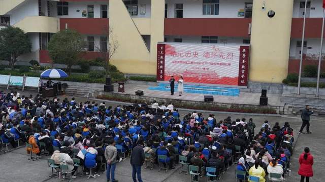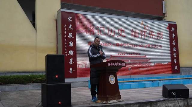 学校副校长晏科致辞,缅怀那些投身民族救亡运动的爱国青年,激励同学们以英雄模范为榜样,努力成为理想远大、信念坚定的新一代;努力成为品德高尚、意志顽强的新一代;努力成为视野开阔、知识丰富的新一代;努力成为开拓进取、艰苦奋斗的新一代,让燃烧的青春在建设中国特色社会主义的伟大事业中焕发出更加绚丽的光彩。