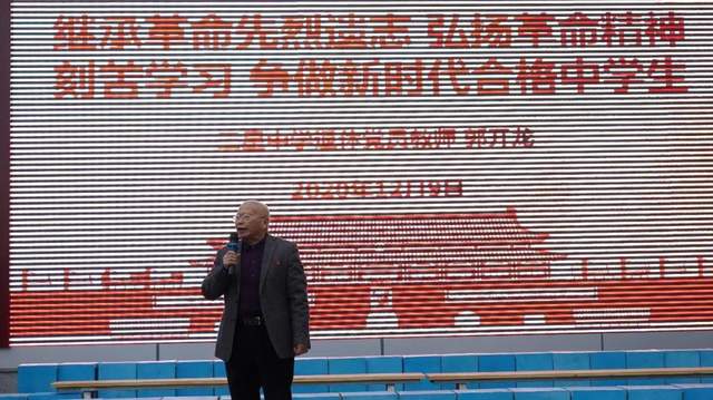 三星中学退休党员教师郭开龙以“继承革命先烈遗志 弘扬革命精神 刻苦学习 争做新时代合格中学生”为主题为同学们讲述华阳地区老一辈革命家的历史故事。