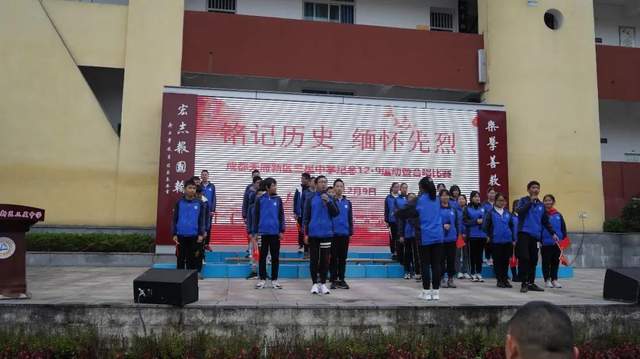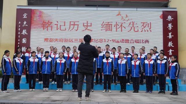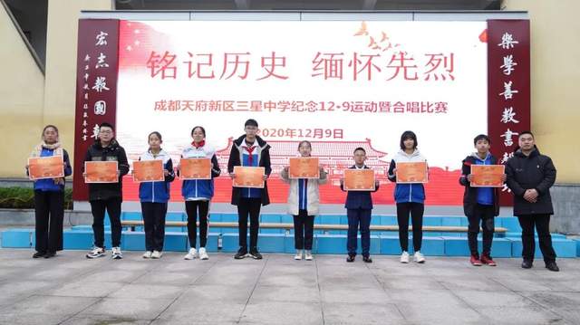 四川行知教育网讯:为了纪念“一二.九”爱国学生运动85周年,铭记历史、缅怀先烈,激发同学们的爱国热情,发扬优良革命传统,贯彻落实学校"五育并举"发展目标,展现三星学子积极向上的精神风貌,唱响新时代主旋律。12月9日,成都天府新区三星中学举行纪念“一二·九”运动暨合唱比赛。