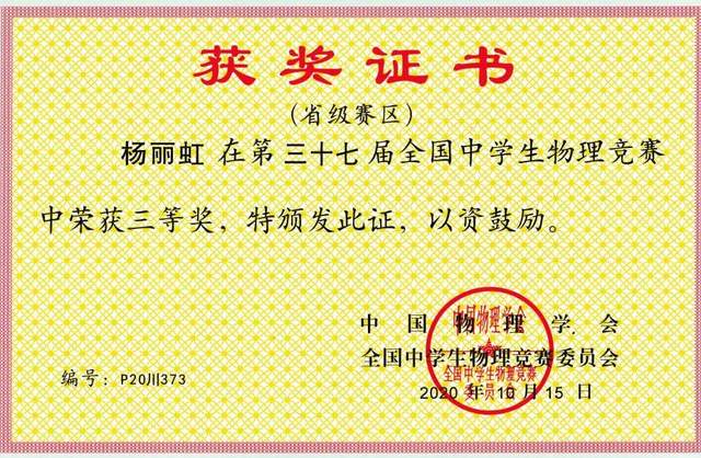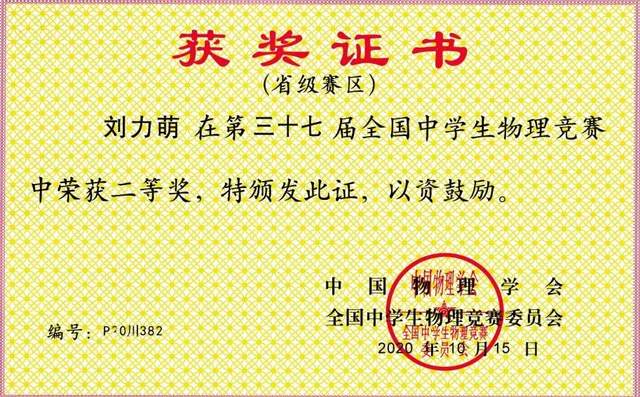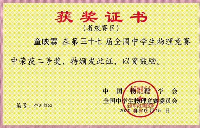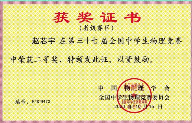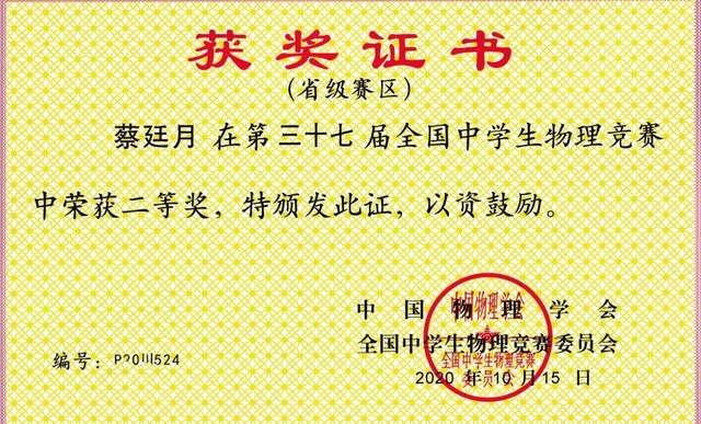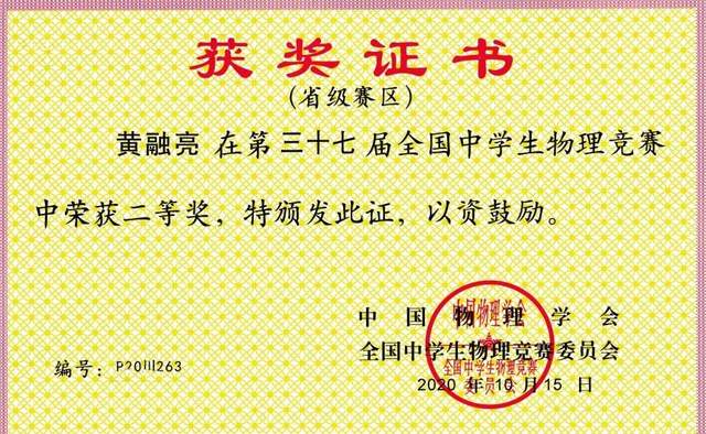 全国二等奖: 夏星宇、敖樱芝、李欣奇、黄融亮、唐浩原、谢瑞阳、孙小杰、童映霖、杨婉琪、刘力萌、刘祥乐、赵芯宇、肖凯旗、王乐涯、李广新、魏 菡、蔡廷月、庞淇尹。