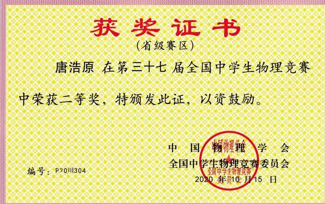 四川行知教育网讯:热烈祝贺成都市双流区棠湖中学学生在“第37届全国中学生物理竞赛”中喜获佳绩:20人进入复赛,其中18人获全国二等奖,2人获全国三等奖,在棠湖中学物理学科竞赛上创历史新高!现向所有获奖同学表示热烈的祝贺!向竞赛教练团队和科任教师表示衷心的感谢!