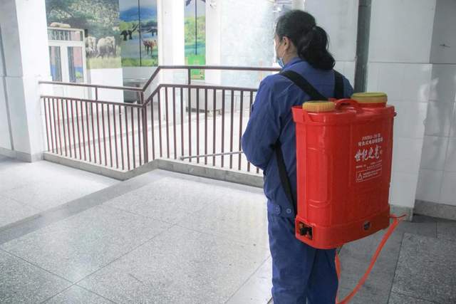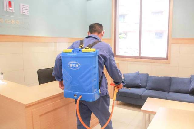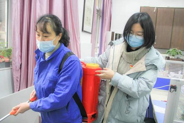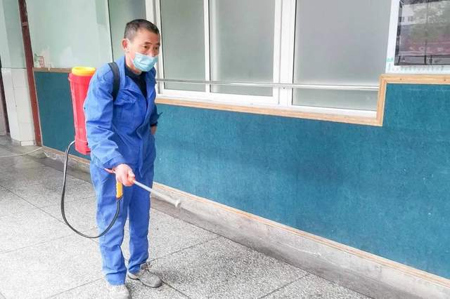 傍晚时分,夜幕垂落,党员同志们还必须逐一检查校园的每一个角落,带领后勤保洁员做好消杀工作,为孩子们第二天的学习提供安全、健康的校园环境。