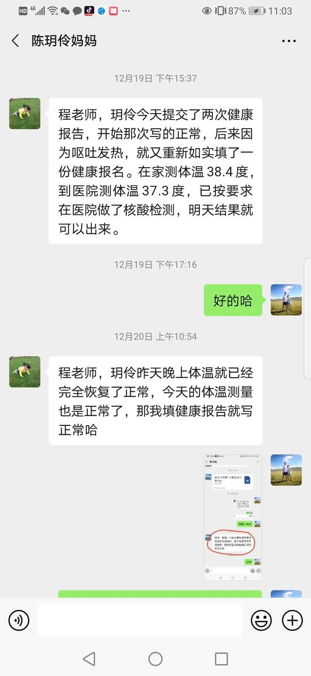 信息排查是看不见的体力劳动,与家长的沟通和交流更是一项繁琐的工作。为了保证每一个信息都能做到精准、及时,党员同志不辞辛劳,耐心细致地和家长进行对话,做解释,做培训……
