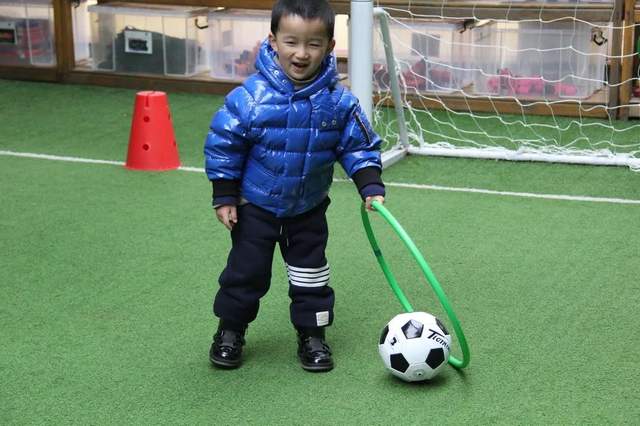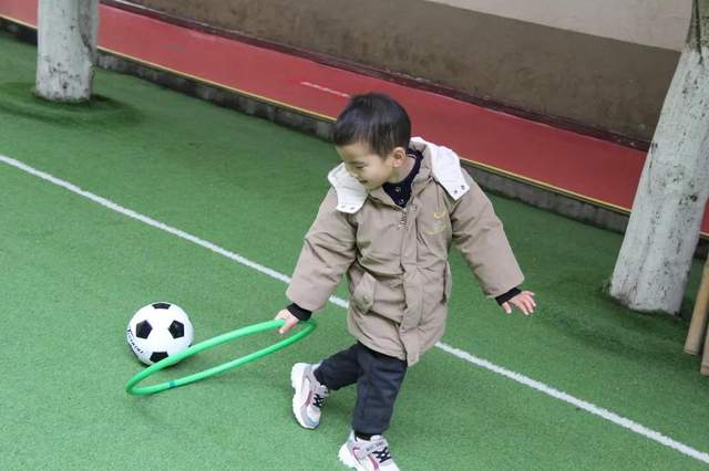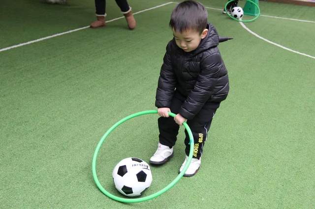 呼啦圈遇上足球,会有什么好玩的游戏?当呼啦圈套住球的那一刻,宝贝们的心中只有一个目标,小心翼翼拖动着“西瓜”,越过障碍物,抵达终点。别看这一个小小的球和短短的距离,这可是对宝贝们眼手脚协调能力的极大的考验呢!