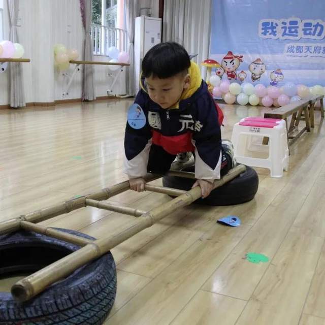 你喜欢走平衡吗?你能平稳地从竹梯上爬过去吗?对于中班幼儿来说,还是有一定的难度。但是你瞧,他们挑战了自己!