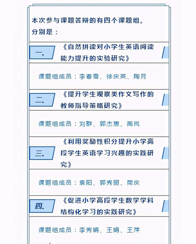 在贺院的指导下,各课题组对所研课题有了深入、辩证的思考。在接下来的研究中,各课题组也将继续从加强专业文献阅读,研究措施进一步聚焦,理性思考进一步深入方面进行后续的实施与改进。