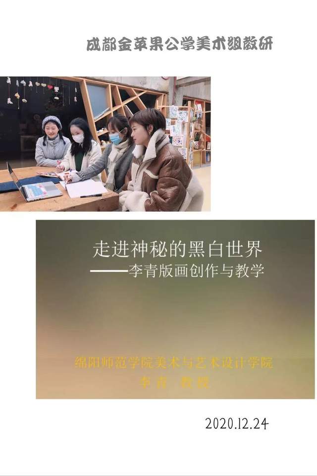 四川行知教育网讯: 12月24日上午,由成都高新区中和小学主办的美术教师专业发展基地“走进黑白艺术世界”教研活动,本次活动特邀中国美术家协会会员,国家一级美术师,四川美术家协会创作研究院研究员、四川省美术家协会版画艺术委员会委员,李青教授,对全区100多名美术教师在线进行培训和指导,本次培训内容分为三个部分。