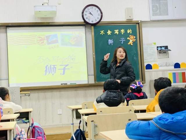 梁婷老师讲授《不会写字的狮子》时带着学生运用看,猜测,想象的方法阅读绘本,让学生学会用正确的方法表达自己的感情。