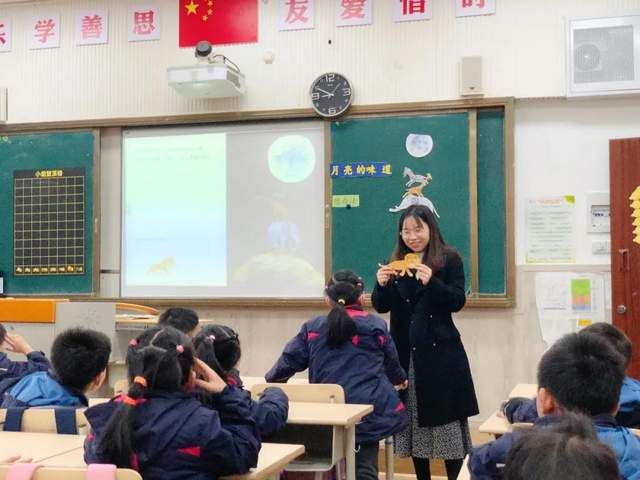江欣悦老师在《月亮的味道》一课中,通过让学生猜测、想象去理解故事内容,感受动物们齐心协力“尝”到月亮的味道的有趣过程。同时进一步巩固阅读绘本故事的方法:专心听、仔细看、大胆猜、说清楚。