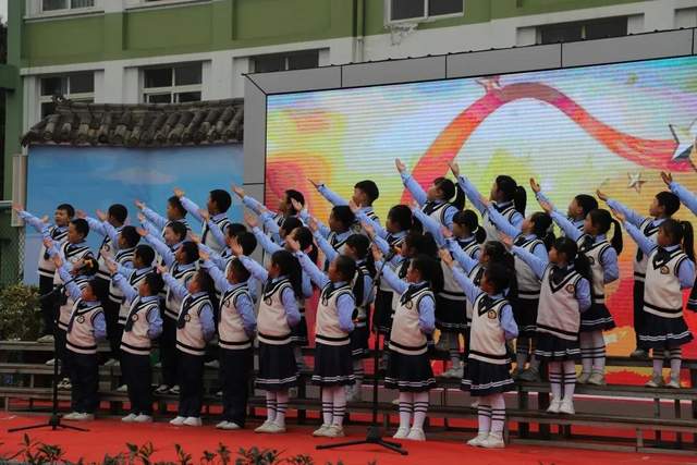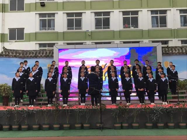 一曲《走向辉煌》唱出了全校师生美好的愿望,也拉开了此次活动的序幕。一年级的小朋友们稚嫩而又充满激情的歌声赢得了师生们的阵阵喝彩。二年级小朋友深情地演唱了《国家》、《送别》、《祖国祖国我爱您》《卢沟谣》,台下掌声不绝于耳。3—6年级各具特色的演唱展现了煎小稚子们的朝气和活力。活动中罗玮、胡瑶两位老师带来了活力四射的《中国话》,更将活动推向了高潮。