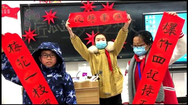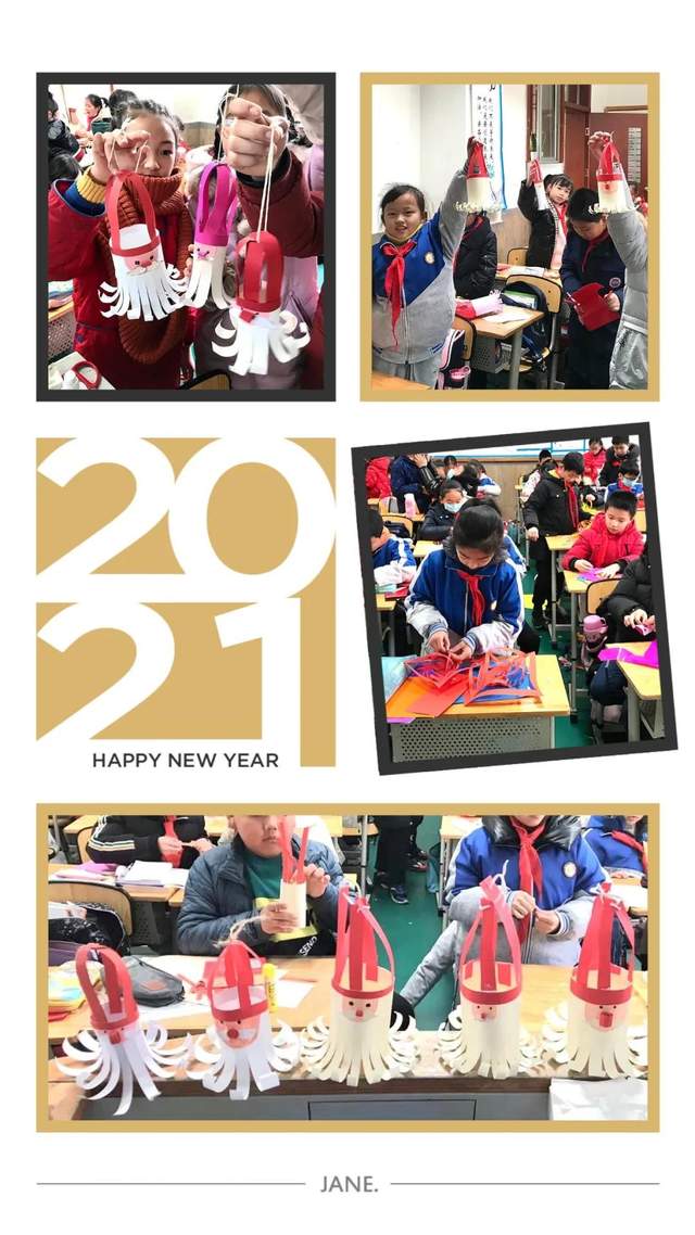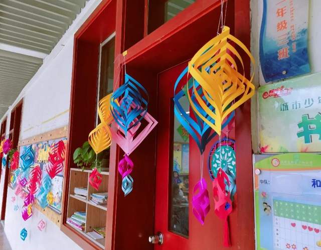 迎新春,庆元旦,周一的升旗仪式拉开了活动帷幕。校园里,走廊上,教室内,各处张灯结彩,红红火火。一张张卡纸经过孩子们的精心设计,变化出一个个美丽的小星星,一幅幅精美的对联,一串串精致的折扇……焕然一新的校园,孩子们用自己的方式迎接新年的到来!