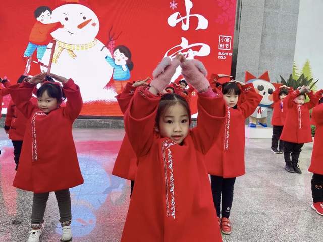 2020.1.4日,成都市华阳中学附属小学一年级六班的孩子们身着红彤彤的传统新衣,歌声嘹亮,颂唱着《二十四节气歌》。动作整齐,巧用趣味手指操,舞出对中国传统节气的理解和记忆。