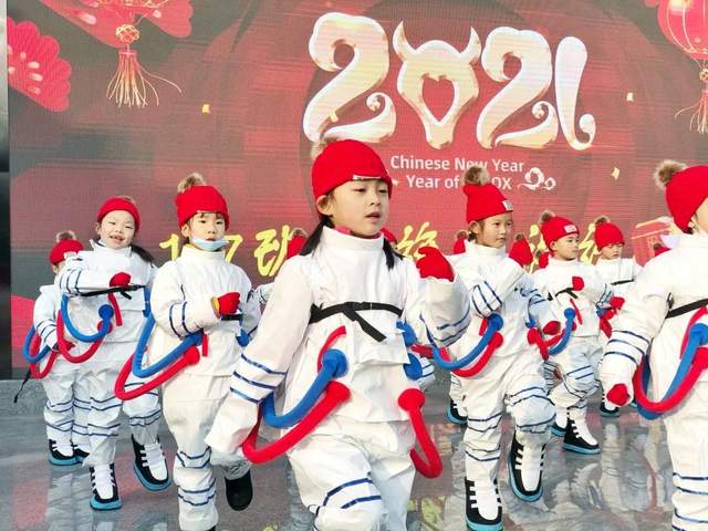 伴上火热的音乐,成都市华阳中学附属小学的孩子们舞出了对于春节的兴奋,炸出了牛年的吉利与干劲!传统的服装配上现代的舞蹈。二者交融,更显示出当代春节的出彩。
