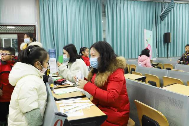 四川行知教育网讯:岁暮天寒时节,成都平原迎来了2021年的第一场雪。在这个天凝地闭的日子里,成都天府新区南湖小学开展了一年级口语(语文+英语)综合能力测评。1月7日上午8点30分测评活动正式开始,一年级的孩子们在老师的带领下手握测评卡,排着整齐的队伍来到会议室测评。
