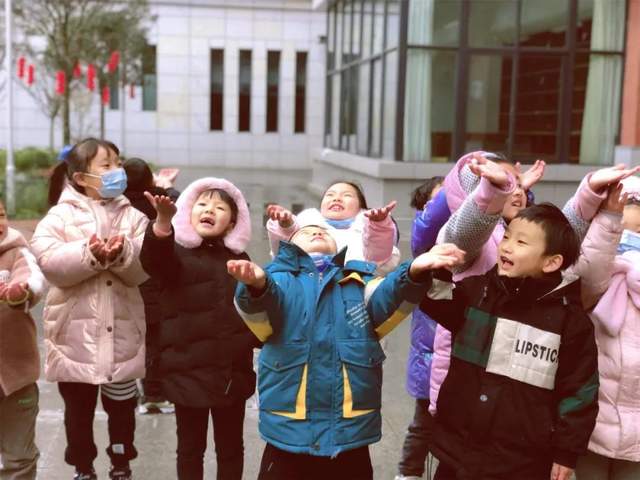 笑声响彻操场、玩起来、跳起来、蹦起来,闹起来、闻起来,感受初雪的冰爽,体验初雪的趣味。