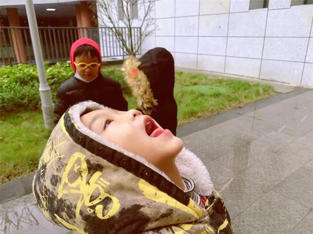 你走在路上张嘴吃雪花的模样