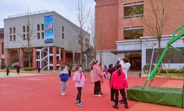 成都天府新区华阳小学:今日份心动!校园与初雪撞个满怀