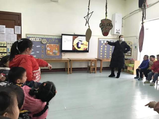 接着是李林倩老师带来的大班语言活动《獾的美餐》。李老师通过图画和文字生动形象地讲述着故事,语言文字简介,故事情节蕴涵哲理,老师和孩子互动扮演绘本中一个个精彩的故事情节,让孩子们体会到要珍惜现在美好的生活。