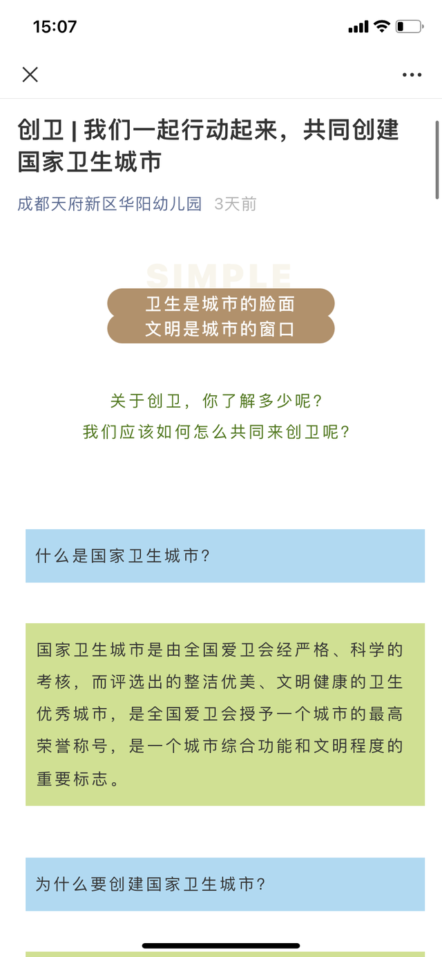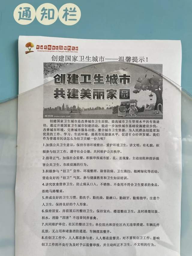 天府新区华阳幼儿园开展“创建国家卫生城市”活动