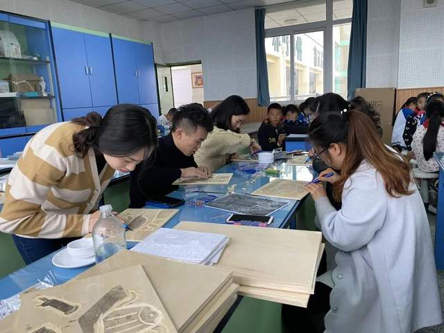 版画工作坊师生们利用周末及节假日时间开展队子训练(木版画、吹塑版画)、校园科技艺体节布展、文化交流活动、教科院科学学科《皮影戏》案例编写等活动。在此基础上,以版画工作坊为载体,我校承担了省级课题《中小学艺术教育工作坊活动模式研究》的子课题工作,现已顺利结题。
