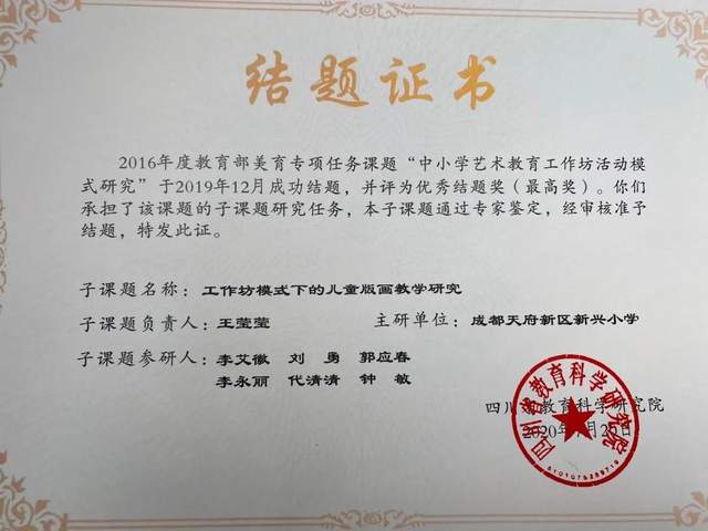 天府新区新兴小学因艺术教育成绩卓越,成功创建“成都市艺术教育特色学校”。