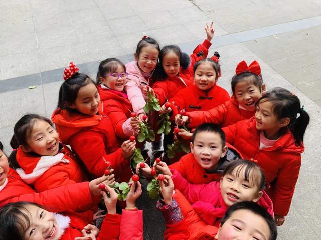 孩子们兴高采烈的把萝卜分享给老师和同学,并且告诉他们萝卜是如何生长的。