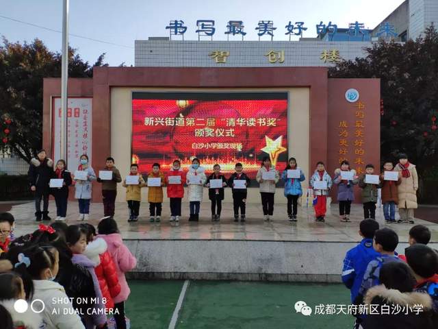 四川行知教育网讯: 1月18日上午,迎着温暖的冬日阳光,四川天府新区白沙小学迎来了一年一度的“清华读书奖”颁奖典礼。