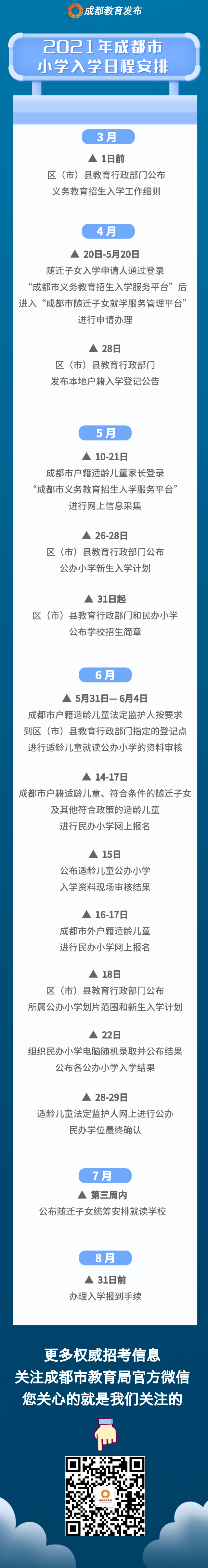 3.成都市外户籍适龄儿童少年可按照各区(市)县教育行政部门公布的面向成都市外招生的民办学校报名。
