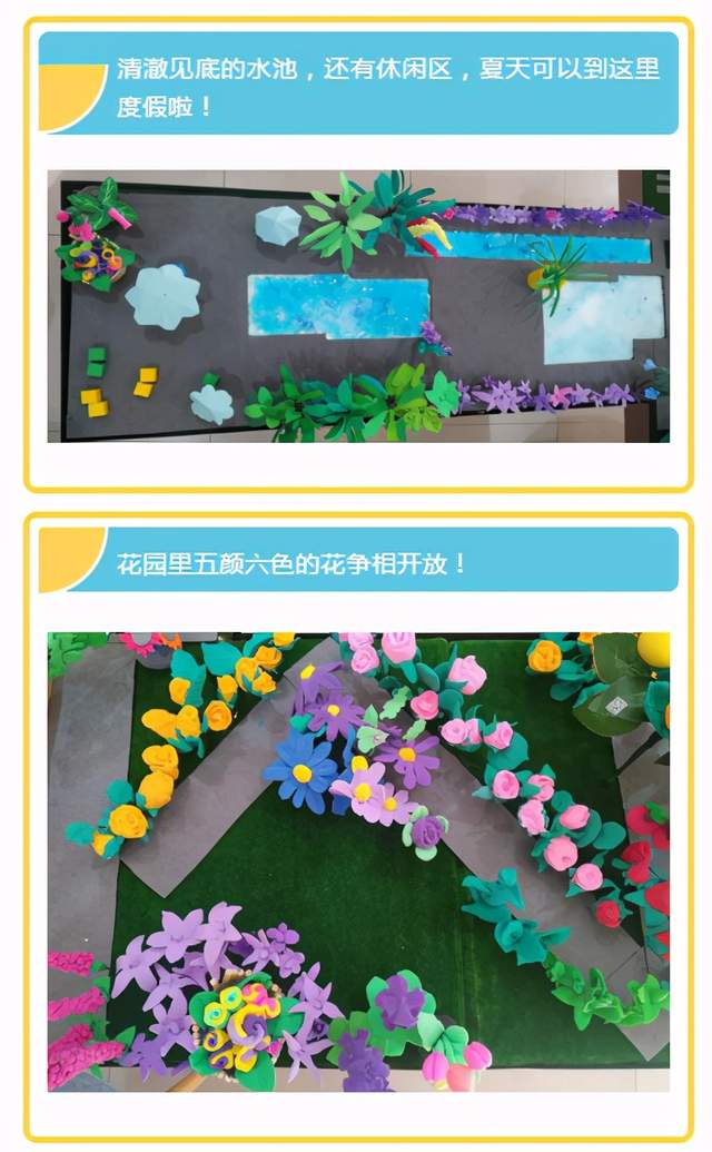 在老师们的耐心细致指导下,在孩子们的心灵巧手制作下,我们的天空农场“沙盘模型”完工啦!