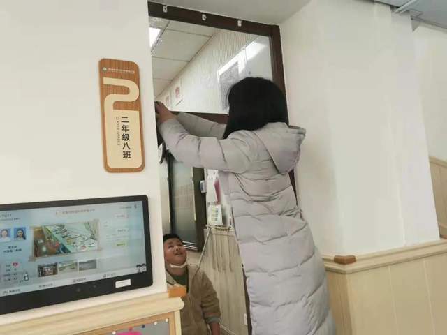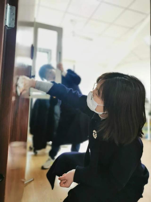 细致的附小人不放过任何一个卫生死角。门框、门把手、多媒体均被清洁消杀到位。