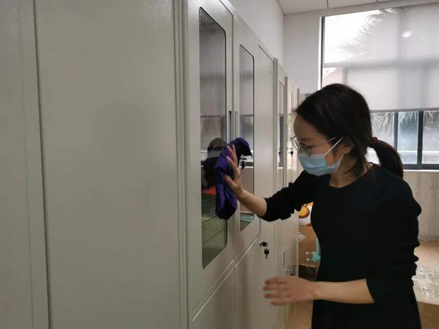 老师们对教室、洗手间、办公室、桌椅、门把手、水龙头等常接触到的地方进行清洁消毒,先是用配比好的“84”消毒液进行消毒,然后用清水冲洗,最后再用抹布擦干净。对平时容易忽略的犄角旮旯也仔细清扫,认真消毒,做到不留任何卫生死角。