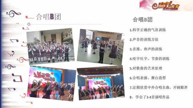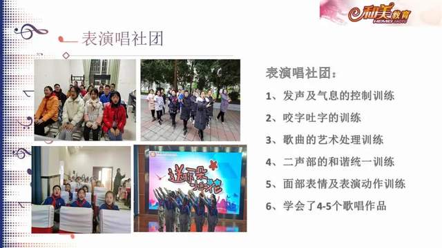 音乐学科主任魏兰老师就本期音乐社团开展情况做总结。音乐社团训练以“悦”音乐学科课程建设为依托,进行音乐类社团开展。社团将为各级各类比赛及表演储备优秀的人才和节目;社团辅导老师们根据学生年龄特点、兴趣爱好,因材施教,努力激发学生潜能,张扬个性特长,让每一位社团成员都有一技之长。