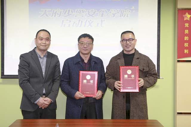 同时,聘请四川省陶行知研究会秘书长刘明建老师和成都广播电视台都市生活频道编委、全媒体中心主任田乔飞为天府少警安全学院名誉院长;聘请成都拾佳创综合体能训练中心创始人李波老师;四川一家一救健康管理有限公司创始人李聃老师;克拉夫马伽术成都文化传播有限公司刘向老师;成都十分浩学文化传播有限公司潘浩老师为天府少警安全学院专家库专家。