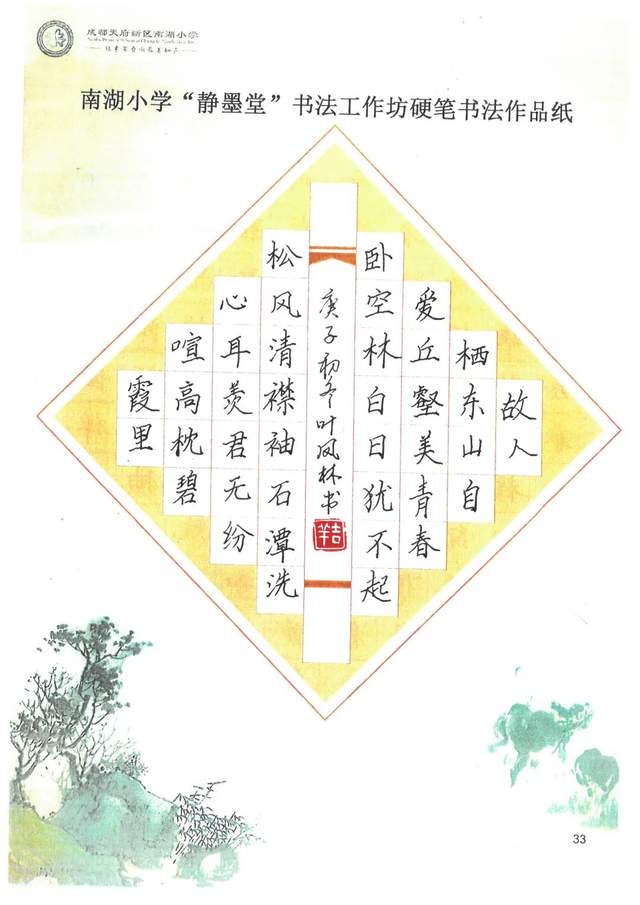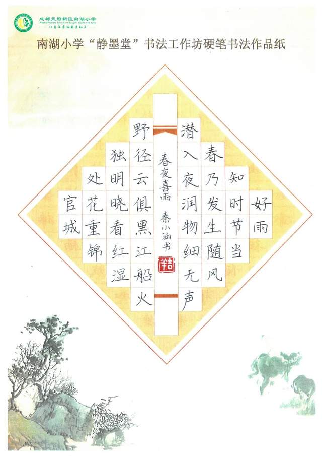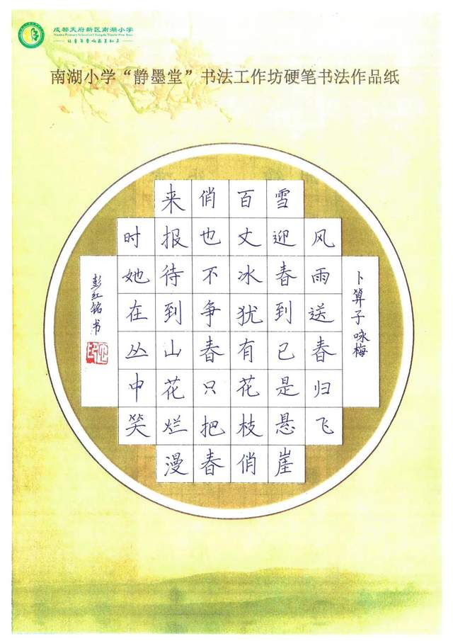 四川行知教育网讯:2020年12月11日上午,伴着暖暖的冬日阳光,南湖小学“静墨堂”书法工作坊的人儿又开始忙活起来,迎来了本周活动——硬笔书法的练习与提升。