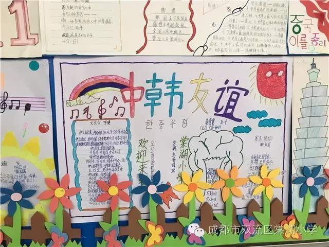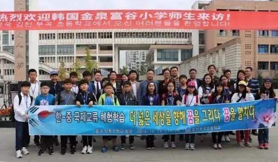 与韩国金泉富谷小学开展“韩国文化周”,交流中韩文化。