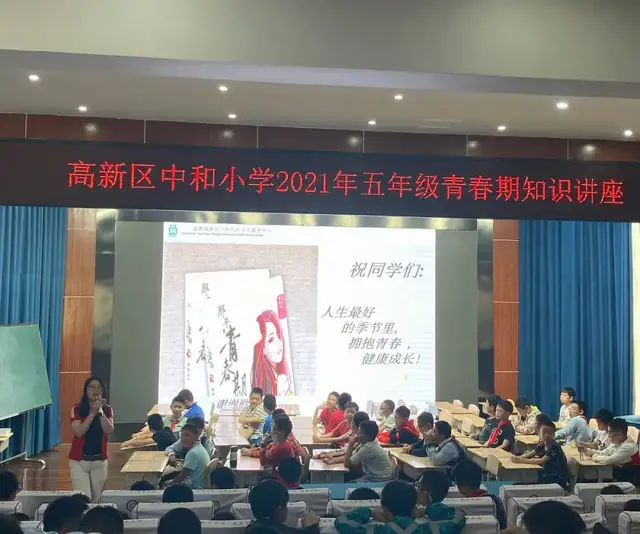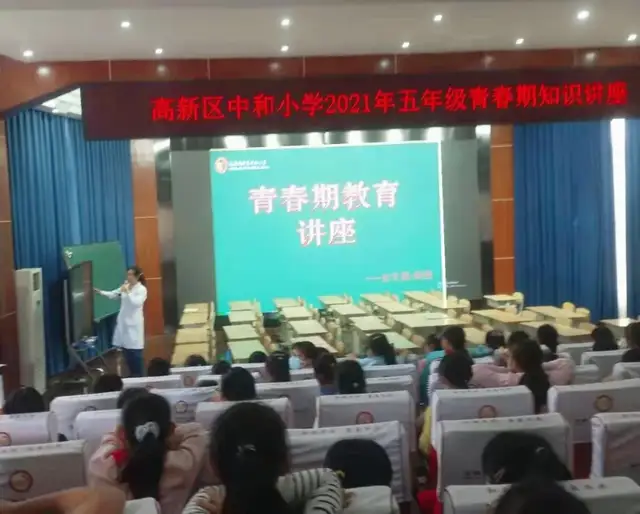 青春期是多彩多姿、充满幻想的时期,又是一个脆弱的、心理波动起伏较大的关键时期。为了加强对学生的青春期教育,引导学生正确面对青春期生理、心理变化,帮助学生能够更好的掌握青春期生理保健知识,解除青春期困惑,从而培养良好的心理素质、道德修养和自强、自爱、自尊意识,成都高新区中和小学于2021年4月28和4月29日举行了一场充满正能量的青春期知识讲座。本次讲座由来自中和卫生服务中心的黄燕医生和喻小静医生主讲,参与此次讲座的是中和小学近四百余名已进入青春期的和将要进入青春期的学生们。