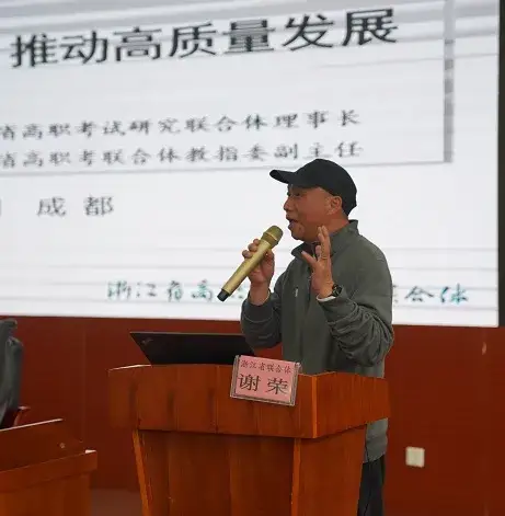 成都工程职业技术学校党委书记、校长徐力致欢迎辞后,浙江省高职考试研究联合体理事长、浙江省高职考联合体教指委副主任谢荣作题为《强化类型管理 推动高质量发展》的四川省对口升学考试本科上线分析及联合体工作汇报专题讲座。分享交流了浙江职教发展现状后,他就近期教育部、省文件有关内容和《四川省职业教育改革实施方案》进行了详细解读,并对2020年四川省对口升学本科上线情况进行了条分缕析。他指出,现代职教基础在中职,支撑在产业,依托在企业,动力在市场,生命在就业。他强调,要坚决贯彻习近平总书记关于职业教育的讲话精神,优化职业教育类型定位,稳步发展职业本科教育推动职普融通,深入推进职业教育高质量发展。