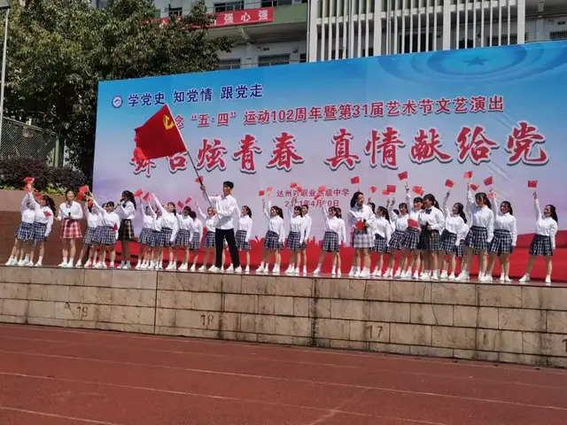 四川行知教育网讯:为深入学习贯彻习近平新时代中国特色社会主义思想和党的十九大精神,以庆祝中国共产党成立100周年和纪念五四运动102周年为契机,以党建带团建为抓手,推进共青团组织建设,增强团员的政治性、先进性,引领广大青少年感党恩、听党话、跟党走,同时促进团员队伍建设,激发新团员的责任感和使命感。在五四青年节来临之际,达州市职业高级中学2021年新团员入团宣誓仪式于4月30日举行。