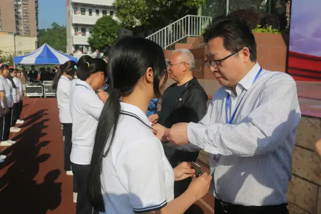 仪式开始,由校领导为新团员颁发团员证和佩戴团徽。每个新团员佩戴上团徽的这一刻起,就要认清自己肩负的责任,努力履行团员的义务,用实际行动来证明自己无愧于共青团员这个光荣的称号。
