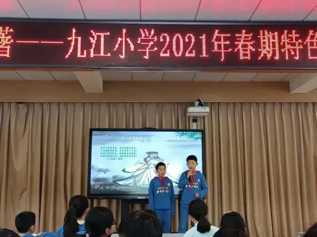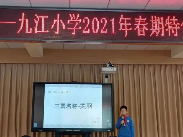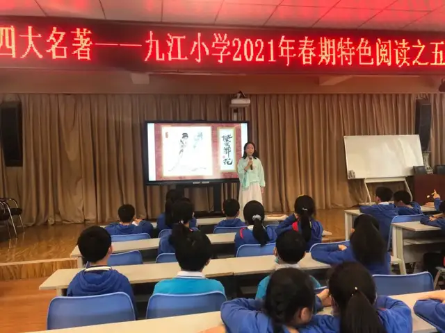四川行知教育网讯:4月30日,九江小学五年级举行了“闲话四大名著”阅读分享会。每个班的参赛选手就自己对名著的解读推荐喜欢的人物:足智多谋的诸葛亮、英勇无畏的打虎英雄武松、神通广大的孙悟空、还有多愁善感的林妹妹……