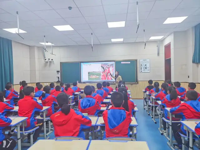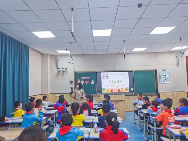 同时,邓老师结合自己精心准备的实物教具、录制的学生视频、拍摄的学生照片让学生通过听,说,读,演,唱的方式去掌握目标语言,使整堂课变得非常形象生动有趣。