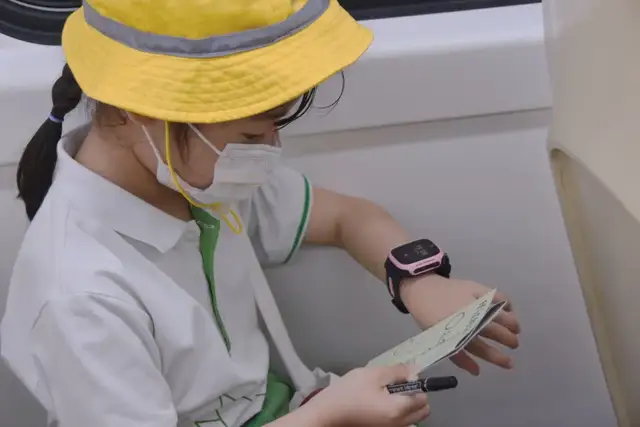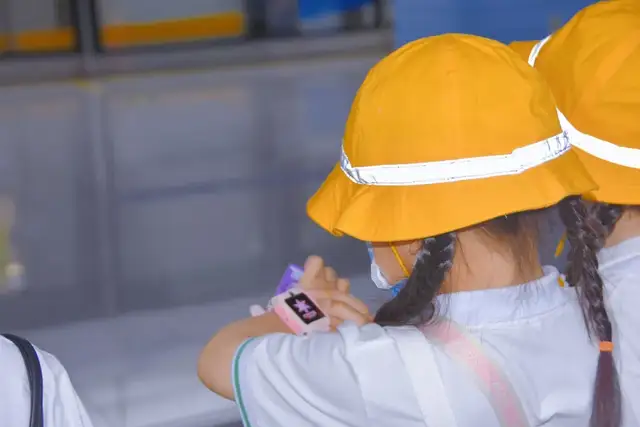 “列车即将进站,请乘客坐好上车准备”当听到地铁站传来这句播报语时,小朋友专心低着头,看着手表上的数字,心里默默的数着,“地铁停靠的时间是多久呢?”小朋友们自己曾提出的问题,现在也需要他们自己去找到答案。
