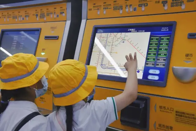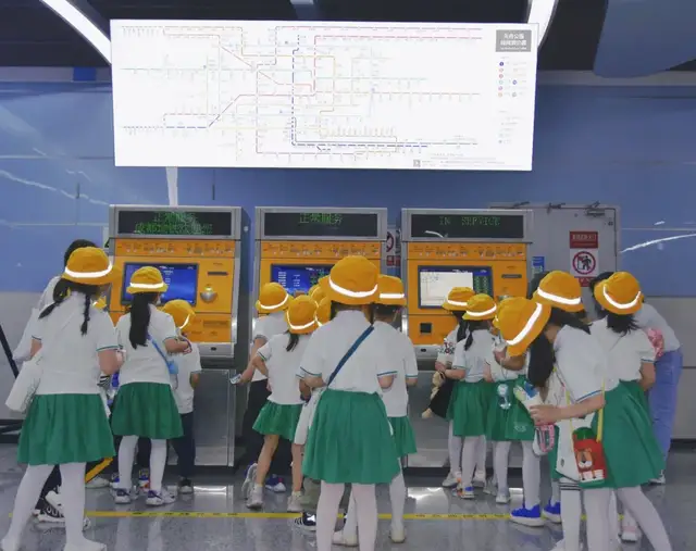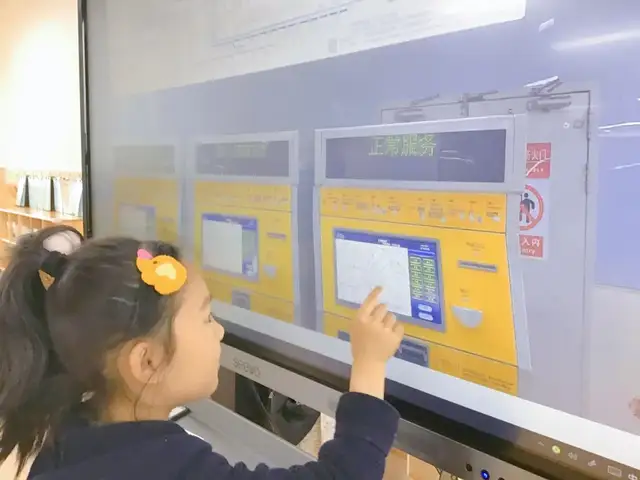 小小的手指在自动售票机上有序的滑动着,有的小朋友嘴里还说着“好紧张啊!”,