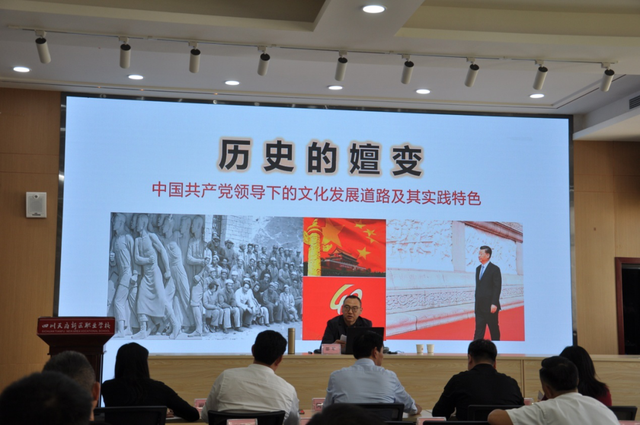 会议特邀中共成都市委党校文化建设教研部主任邵军开展了以《历史的嬗变——中国共产党领导下的文化发展道路及其实践特色》党史学习专题讲座。他从文人结社,马克思主义在中国的传播以及共产党的成立,娓娓道来地叙说马克思主义为什么“行”,中国共产党为什么“能”,中国特色社会主义为什么“好”,激励全校教师把学习党史同推动工作和解决实际问题结合起来,为建党100周年献礼。